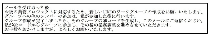 現在、当社および当社代表者を騙り、受信者にLINEグループの作成を求める等の迷惑メールが複数確認されております。